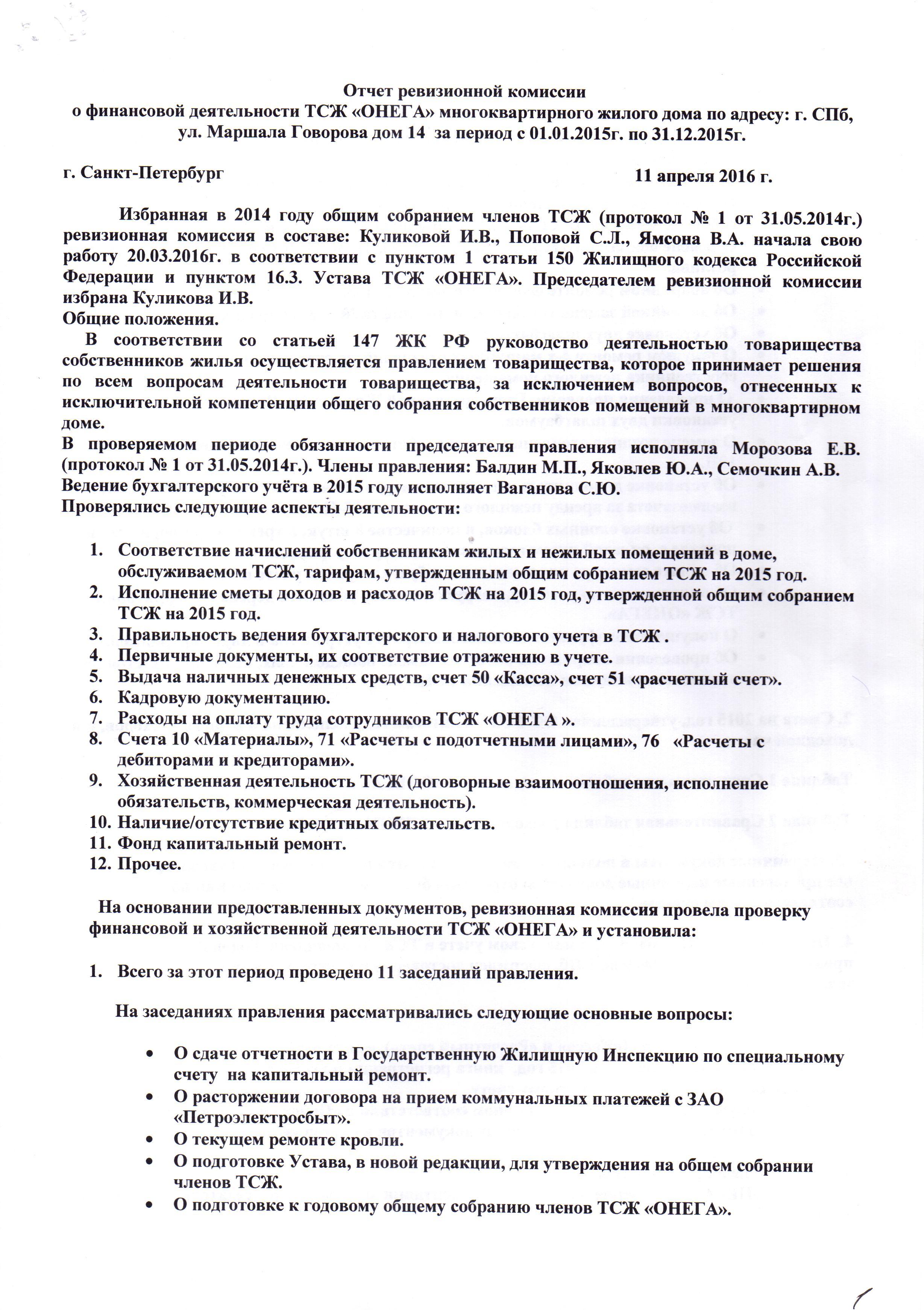 - Отчет ревизионной комиссии 2016г за 2015 г. — 1 стр.